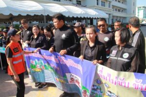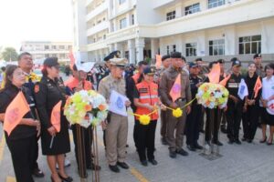 ภายในงานมีหัวหน้าส่วนราชการ ตำรวจ ทหาร หน่วยงานท้องถิ่น อาสาสมัคร และภาคีเครือข่ายด้านความปลอดภัยร่วมกิจกรรมจำนวนมาก พร้อมปล่อยขบวนรถรณรงค์สวมหมวกนิรภัย ขับขี่ปลอดภัย ลดความเสี่ยงอุบัติเหตุบนถนน