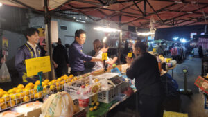 โดยได้นัดรวมตัวกันที่ตลาดทิพนิมิต ก่อนจะขึ้นรถแห่ เดินทางไปที่ตลาดนัดเรือบิน จากนั้นลงเดินหาเสียง พบปะพ่อค้าแม่ค้าและประชาชนอย่างใกล้ชิด ท่ามกลางบรรยากาศเป็นกันเอง