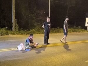 นครนายก – ชาวบ้านโทรแจ้งตำรวจพบชายนั่งกลางถนนเกรงจะถูกรถชนได้รับอันตราย