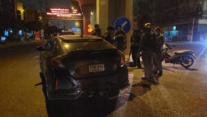 ขณะที่พยานอีกคนให้ข้อมูลสอดคล้องกัน โดยระบุว่า คนเจ็บมาจากทางปากน้ำ ขับรถเป๋มาเหมือนจะชนตอม่อ ฝ่ายคู่กรณีเขายูเทิร์นมา ทางคนเจ็บเหมือนจะไปชนเขา แล้วได้ลงมาขอโทษและมีปากเสียงกันก่อนจะเกิดเหตุ