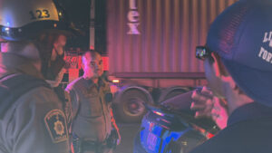 จากการสอบถาม พลเมืองดีที่เห็นเหตุการณ์และเป็นคนที่เข้าไปห้ามไม่ให้ผู้ก่อเหตุทำร้ายร่างกายเจ้าหน้าที่ตำรวจนายนี้ โดยเจ้าตัวบอกว่า ตนผ่านทางมาเห็นและได้ลงไปช่วย ห้าม คนเจ็บขับรถมาทางตรงมุ่งหน้าไปทางด้านสำโรง คู่กรณีกำลังจะยูเทิร์น แล้วเหมือนคนเจ็บจะเมาเลยเกือบจะชน ทำให้มีปากเสียงกัน ด้านคนเจ็บลงมาขอโทษ ตนเป็นคนเข้ามาห้ามตั้งแต่แรก ตอนแรกเขาต่อยกัน ทางคู่กรณีก็ถือมีดอยู่ในมือ พอเขาแทงก็ขี่มอเตอร์ไซค์หนีไป คนเจ็บมีอาการมึนถามตอบอะไรไม่รู้เรื่อง จากนั้นก็ล้มหัวฟาดพื้น ด้านคู่กรณีขี่รถมอเตอร์ไซต์ มาคนเดียวเป็นรถเวฟ 110 สีดำแดง หลังเกิดเหตุได้ขี่รถหนีไปทางบางด้วน ทางฝ่ายคนเจ็บมีอาการเมามากเพราะตอนที่ลงจากรถมาถามตอบอะไรไม่รู้เรื่องเลย