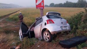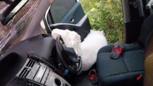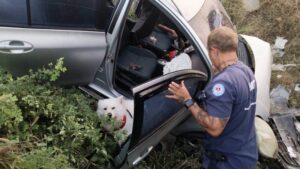 ปทุมธานี – สาวขับเก๋งชนเสาไฟฟ้าสุนัขหวงเจ้าของจัดขู่กู้ภัยไม่ให้เข้าใกล้ต้องรอนาน 15 นาทีถึงช่วยได้