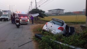 เมื่อเวลา 06.30 น. วันที่ 1 กุมภาพันธ์ 2569 ส.ต.ท.นพฤทธิ์ เจ้าหน้าที่จราจรสภ.เมืองปทุมธานี ได้รับแจ้งจากประชาชนว่ามีรถเก๋งเสียหลักพุ่งชนเสาไฟฟ้า แยกไฟแดงขนส่งปทุมธานี มุ่งหน้า ลาดหลุมแก้วถนนปทุม -บางเลน ตำบลบ้านฉางอำเภอเมือง จังหวัดปทุมธานี จึงเดินทางไปตรวจสอบที่เกิดเหตุ พร้อมด้วยอาสา มูลนิธิปอเต็กตึ้ง