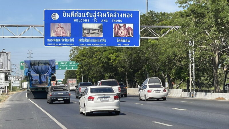 อ่างทอง – สภาพการจราจรถนนสายเอเชียช่วงผ่านจังหวัดอ่างทองรถเริ่มมีปริมาณมากแต่สามารถทำความเร็วได้ ความเร็วประมาณ 80 – 100 กม./ชม.