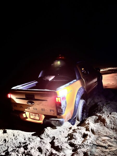 พังงา-วุ่นทั้งชายหาด! นักท่องเที่ยวต่างชาติขับกระบะลงหาดนาใต้ รถจมทรายติดขึ้นไม่ได้ ต้องเร่งกู้แข่งน้ำทะเลขึ้น