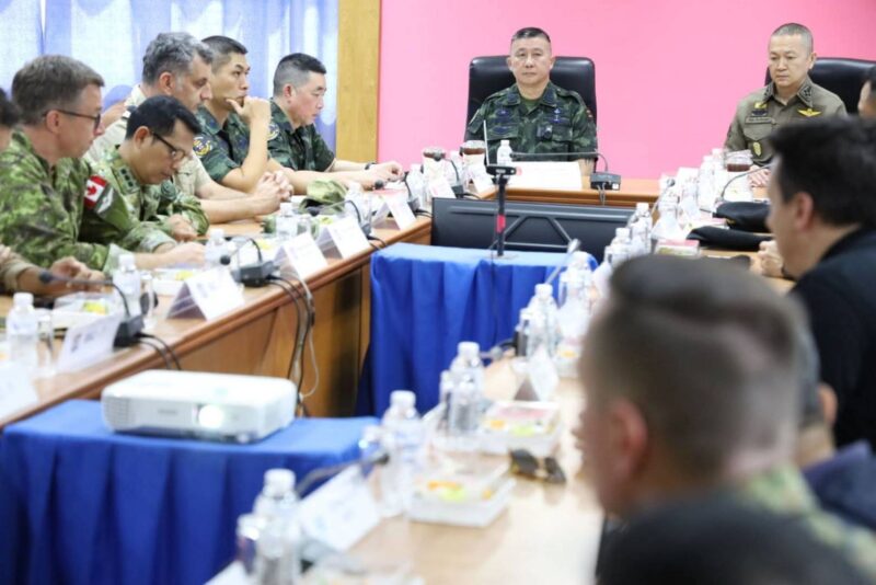 เวลา 13.00 น. ณ มณฑลทหารบกที่ 25 จังหวัดสุรินทร์ พล.ต.อ.ธัชชัย ปิตะนีละบุตร รองผู้บัญชาการตำรวจแห่งชาติ ในฐานะผู้อำนวยการศูนย์ต่อต้านการค้ามนุษย์ สำนักงานตำรวจแห่งชาติ พร้อมด้วยพลโทธีรนันท์ นันทขว้าง เจ้ากรมข่าวทหารบก นำคณะผู้ช่วยทูตทหารต่างประเทศ จาก 20 ประเทศ ลงพื้นที่ กกล.สุรนารี จังหวัดสุรินทร์ เพื่อตรวจเยี่ยมพื้นที่ ที่ได้รับผลกระทบจากสถานการณ์ชายแดนไทย – กัมพูชา โดยมีพลตรี สมภพ ภาระเวช ผู้บัญชาการกองกำลังสุรนารี พร้อมด้วยคณะทำงานจากหน่วยงานด้านความมั่นคงและหน่วยงานที่เกี่ยวข้อง ร่วมกับหน่วยทหารในพื้นที่ให้การต้อนรับ และบรรยายสรุปข้อมูลให้คณะผู้ช่วยทูตทหารต่างประเทศประจำประเทศไทย(AOT) ได้รับทราบสถานการณ์และติดตามปัญหาอาชญากรรมทางไซเบอร์และขบวนการสแกมเมอร์ ในพื้นที่บริเวณชายแดนช่องจอม อำเภอกาบเชิง จังหวัดสุรินทร์