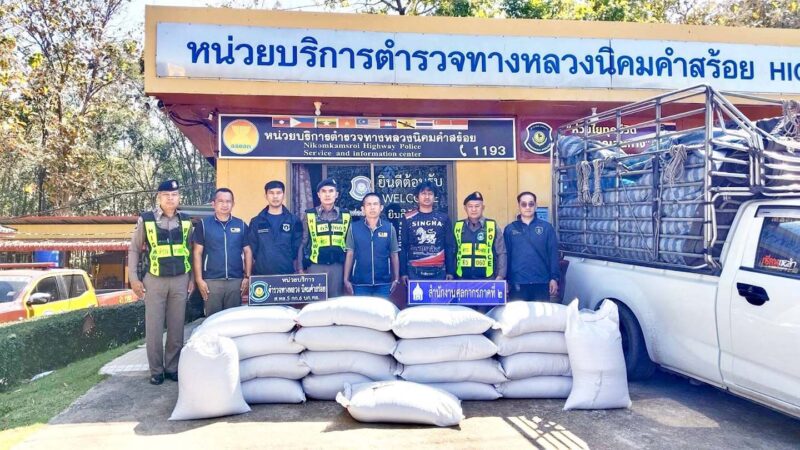 มุกดาหาร ตำรวจทางหลวงสนธิกำลังตรวจยึดข้าวเหนียวดำรวม 90 กระสอบลักลอบนำเข้า