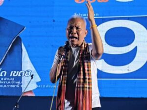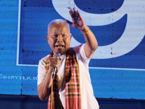 นายโสภณ ซารัม ขึ้นเวทีปราศรัยด้วยน้ำเสียงหนักแน่น กล่าวถึงประเด็นความมั่นคงชายแดนไทย–กัมพูชา โดยย้ำชัดว่าหากกัมพูลายังคิดเป็นปรปักษ์ต่อประเทศไทย ไม่มีนโยบายการเปิดด่านอย่างแน่นอน