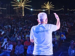 ด้าน นายธนชัย สินธุไพร ผู้สมัคร ส.ส.เขต 8 ขึ้นเวทีปราศรัยในสไตล์ตรงไปตรงมา สะท้อนปัญหา