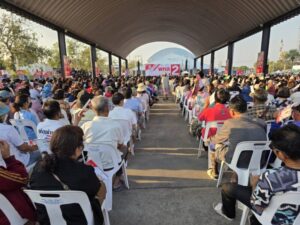 จากนั้นได้ขึ้นเวทีพบกับประชาชนจำนวนมากที่ทยอยเดินทางมารับฟังการปราศรัย ซึ่งมีนายวรวงศ์ วรปัญญา ได้ขึ้นเวทีปราศรัยเป็นคนแรกมีประชาชนมามอบดอกไม้และพวงมาลัยเป็นจำนวนมาก จากนั้นพิธีกรได้เชิญ นายพหล วรปัญญา ขึ้นไปบนเวทีได้กอดกับนายวรวงศ์ วรปัญญา ที่เดินทางมาช่วยหาเสียง โดยมีประชาชนจำนวนมากที่อยู่ด้านล่างของเวทีต่าง ๆ แสดงความดีใจ ทั้งนี้ นายพหล วรปัญญา ได้กล่าวว่าขอฝากเนื้อฝากตัวรับใช้ประชาชนชาวอำเภอบ้านหมี่ นอกจากนี้ยังกล่าวถึงในอดีตที่ผ่านมาตนเป็นส่วนหนึ่งที่ช่วยผลัดดันแก้ไขปัญหาให้กับชาวอำเภอบ้านหมี่ แม้ว่าในช่วงนั้นยังไม่มีตำแหน่งทางการเมือง สำหรับในการเลือกตั้งในครั้งนี้ถ้าประชาชนให้ความไว้วางใจเลือกตนเข้าไปเป็น ส.ส.ก็จะได้คนทำงานร่วมกับคนในตระกูลวรปัญญาในสภาผู้แทนราษฎรถึงสองคน