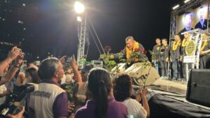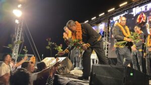 ด้าน พล.ต.ท.พัฒนวุธ ขึ้นเวทีด้วยน้ำเสียงหนักแน่น ชี้สนามหาดใหญ่เต็มไปด้วยเวทีปิดท้ายจากพรรคใหญ่ แต่ยืนยันขออาสาเป็น “นักการเมืองทำงานจริง” ถึงขั้นประกาศไม่รับเงินเดือน หากได้เข้าไปทำหน้าที่ พร้อมย้ำการเมืองต้องมีหัวใจแห่งการให้ อุทิศเพื่อบ้านเมือง