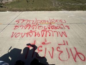 สงขลาไม่พ้น! พ่นสีสเปรย์ก่อกวนในพื้นที่หมู่ที่ 10 บ้านควนหรัน ตำบลท่าม่วง อำเภอเทพา จังหวัดสงขลา