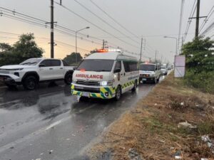 เมื่อเวลา 15.21 น. วันที่ 6 กุมภาพันธ์ 2569 อาสามูลนิธิกู้ภัยร่มไทร ได้รับแจ้งเหตุมีกระบะขับเสียหลักชนเสาไฟส่องสว่าง บริเวณ คลอง10 ถนนลำลูกกา ม.10 ต.บึงทองหลาง อ.ลำลูกกา จ.ปทุมธานี จึงรุดเข้าไปยังที่เกิดเหตุพบนายกำพล ชำนาญเมธีนนท์ อายุ 58 ปี อาชีพพนักงานบริษัทผลิตคอนกรีตแห่งหนึ่ง ย่าน จ.ปราจีนบุรี ติดอยู่ภายในรถกระบะยี่ห้ออิซูซุ สีน้ำตาล ป้ายทะเบียน 3546 ปราจีนบุรี เป็นรถของบริษัทคอนกรีต แห่งย่าน จ.ปราจีนบุรี สภาพรถช่วนหน้าพังยับผู้ขับขี่มีอาการบาดเจ็บเป็นแผลฉีกขาดที่น่องขาซ้ายเนื่องจากมีเหล็กเสียบคาอยู่และแผลถลอกบริเวณใบหน้ามีติดอยู่ภายในรถยนต์กู้ภัยใช้เครื่องตัดถ่างช่วยเหลืออยู่มาได้ในเวลาต่อมาและนำส่งนำส่งผู้บาดเจ็บเข้ารักษาอาการบาดเจ็บที่ รพ.ซีจีเอช ลำลูกกา คลอง8 ทันที