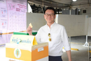 แคนดิเดตนายกฯ พรรคประชาชน ใช้สิทธิเลือกตั้งบางพลี เชิญชวนประชาชนออกมาใช้สิทธิ ย้ำเผื่อเวลา หลีกเลี่ยงรถติด