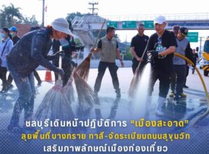 ทั้งนี้ ปฏิบัติการ “ชลบุรีเมืองสะอาด” จะยังคงดำเนินการอย่างต่อเนื่องในพื้นที่อื่นๆ เพื่อสร้างมาตรฐานความสะอาดและความเป็นระเบียบเรียบร้อยให้ครอบคลุมทั่วทั้งจังหวัดชลบุรีต่อไป