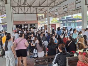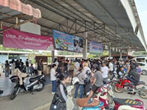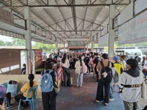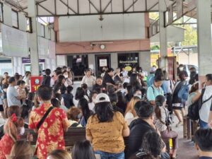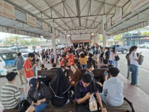 อ่างทอง – กลุ่มเยาวชนเดินทางมาใช้สิทธิเลือกตั้งอย่างคึกคักส่งผลให้พื้นที่ภายในสถานีขนส่งแออัดเป็นอย่างมาก