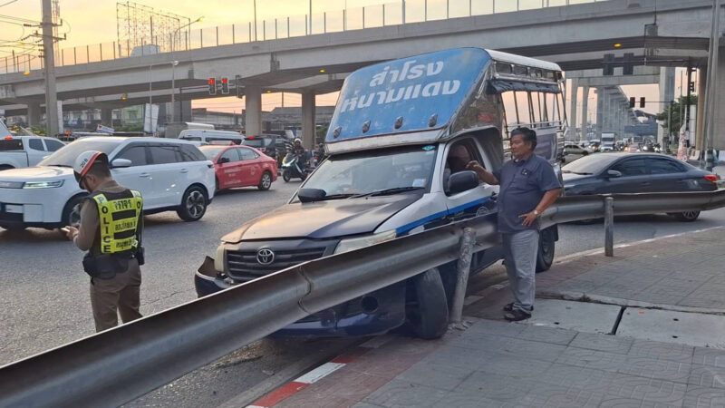 ระทึกกลางแยก รถสองแถวเบรกแตกพุ่งชนรถสองแถวมาทางตรง บาดเจ็บระนาว 6 ราย