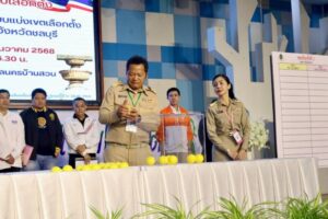 ณศาลาอเนกประสงค์เทศบาลนครบ้านสวนอำเภอเมืองชลบุรีโดยมีนายนริศ นิรามัยวงศ์ผู้ว่าราชการจังหวัดชลบุรีและนายแสวงบุญมีเลขาธิการคณะกรรมการการเลือกตั้งพร้อมข้าราชการที่เกี่ยวข้องร่วมสังเกตการณ์และดูแลความเรียบร้อย