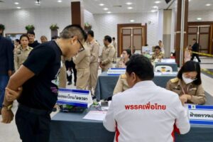 รับสมัครส.ส.ชลบุรีวันแรกคึกคักพรรคใหญ่ส่งครบทุกเขต กองเชียร์แน่นบ้านสวนบรรยากาศการรับสมัครรับเลือกตั้งสมาชิกสภาผู้แทนราษฎรแบบแบ่งเขตเลือกตั้งจังหวัดชลบุรี วันแรกเป็นไปอย่างคึกคัก