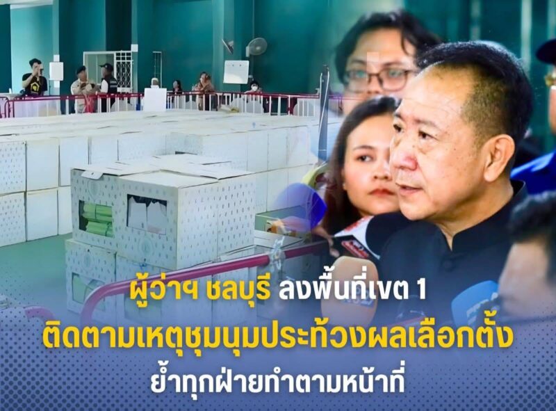 ผู้ว่าฯ ชลบุรีลงพื้นที่เขต 1 ติดตามเหตุชุมนุมประท้วงผลเลือกตั้งย้ำทุกฝ่ายทำตามหน้าที่