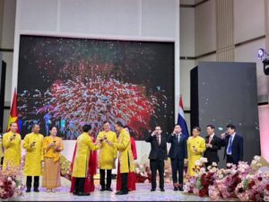 ภายในงานมีหัวหน้าส่วนราชการ ภาคเอกชน และประชาชนชาวไทยเชื้อสายเวียดนามในพื้นที่ภาคตะวันออกเฉียงเหนือเข้าร่วมอย่างคับคั่ง บรรยากาศเป็นไปอย่างอบอุ่น สะท้อนถึงความร่วมมือด้านเศรษฐกิจ การค้า การลงทุน และการท่องเที่ยวที่มีแนวโน้มเติบโตอย่างต่อเนื่อง