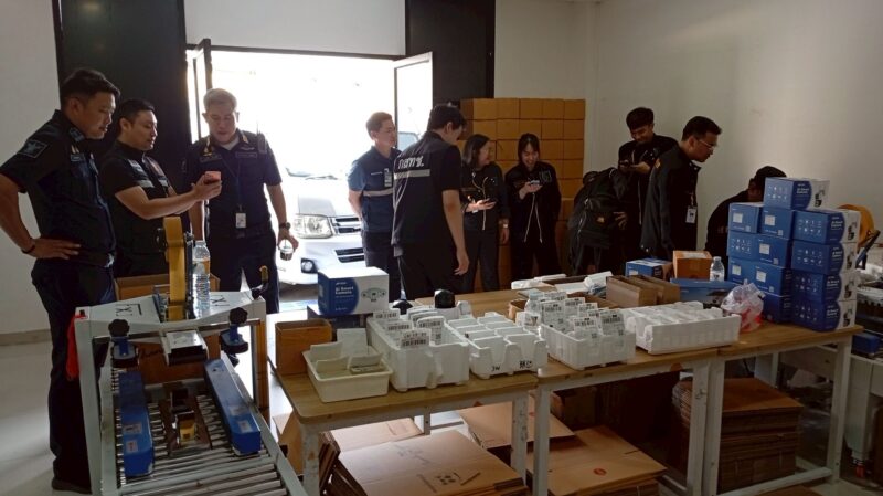 นายไตรรัตน์ วิริยะศิริกุล รองเลขาธิการ รักษาการแทนเลขาธิการ กสทช. มอบหมายให้นายจาตุรนต์ โชคสวัสดิ์ ผู้ช่วยเลขาธิการ กสทช. พร้อมด้วยชุดปฏิบัติการเฉพาะกิจ “หน่วยพระพาย” และเจ้าหน้าที่สำนักกำกับดูแลกิจการโทรคมนาคม ตรวจสอบและติดตามเฝ้าระวังการใช้คลื่นความถี่ของ สำนักงาน กสทช. โดยพบว่ามีผู้ประกอบการหลายรายนำเข้าและจำหน่ายกล้องวงจรปิดโดยไม่ได้ขออนุญาตใช้คลื่นความถี่ และอุปกรณ์ดังกล่าวไม่ผ่านการรับรองมาตรฐานจาก กสทช. ตามที่กฎหมายกำหนด จากการลงพื้นที่ตรวจสอบครั้งนี้พบว่า เจ้าของบริษัทเป็นคนจีน มีผู้ดูแลเป็นคนไทย ใช้อาคารพาณิชย์ตั้งอยู่ในซอยลาดพร้าว 101 เป็นพื้นที่จัดเก็บและขายผ่านช่องทางออนไลน์