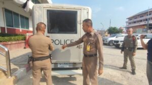 เมื่อเวลา 09.30 น. วันที่ 14 กุมภาพันธ์ 2569 พ.ต.ท.ขจร ฉัตรแก้วมณี รอง ผกก.สอบสวน สภ.เมืองปทุมธานี ได้ควบคุมตัว 3 ผู้ต้องหาสำคัญในคดีกลุ่มชายฉกรรจ์อ้างเป็นตำรวจบุกปล้นทรัพย์บ้านหนุ่มวัย 22 ปี ย่านบางคูวัด ไปฝากขังที่ศาลจังหวัดปทุมธานี ผู้ต้องหาที่ถูกนำตัวไปฝากขังเช้านี้ ประกอบด้วย ร.ต.อ.ปองภพ แก้วคูณ (ผู้กองแขก) รอง สว.ฝอ.บก.น.2 , ร.ต.ต.มานพ แก้วเคน รอง สว.(ป) กก.ปพ.บก.สส.ภ.1 , นายสวัญชัย ชูเลิศ(และล่าสุดช่วงเช้าวันนี้ ชุดสืบสวนสามารถจับกุมเพื่อนร่วมแก๊งได้เพิ่มอีก 1 ราย รวมเป็น 4 ราย)