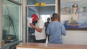 ขณะอยู่บนรถควบคุมผู้ต้องหา ร.ต.อ.ปองภพ (ผู้กองแขก) ได้ชี้แจงกับผู้สื่อข่าวว่า ตนเป็นคนไปขอหมายค้นจากศาลเอง และเป็น “หมายค้นจริง” ไม่ได้ทำเพื่อใครคนใดคนหนึ่ง ยืนยันว่าไม่มีการพกอาวุธปืนไปข่มขู่ ไม่ได้แตะต้องเงิน 8 แสนบาทตามที่ถูกกล่าวหา และมองว่าฝั่งผู้เสียหายอาจแจ้งความเท็จ ส่วนกัญชานั้นอ้างว่ามีเจ้าของถูกต้อง หลานสาวที่มาเยี่ยมระบุว่า ผู้กองแขกสั่งกำชับว่าไม่ต้องทำอะไร และ “ไม่ต้องยื่นประกันตัว” ในชั้นนี้