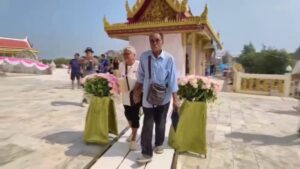อ่างทอง ฮือฮาคุณตาวัย67ปีควงแขนคุณยายวัย76ปีจดทะเบียนสมรสวันวาเลนไทน์หน้าองค์หลวงพ่อใหญ่ วัดม่วง หลังอยู่ด้วยกันมากว่า 40 ปี