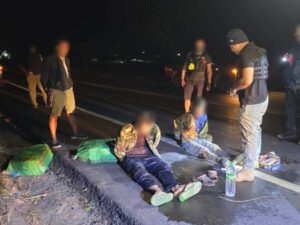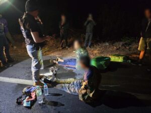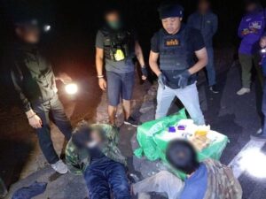 จากนั้นเจ้าหน้าที่ นรข.จึงเข้าควบคุมตัวผู้ต้องสงสัยในข้างต้นและสามารถควบคุมไว้ได้ จำนวน 2 คน ทราบชื่อในภายหลัง คือ 1. ท้าวเตียงคำ พรมโสพา 2. ท้าวบุนเลิด พรมโสพา หลังจากนั้น เจ้าหน้าที่จึงเข้าตรวจสอบพื้นที่ในเบื้องต้น พบว่าเป็นยาเสพติดให้โทษประเภทที่ 1 (ยาบ้า) บรรจุอยู่ภายในกระสอบ จำนวน 3 กระสอบ