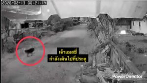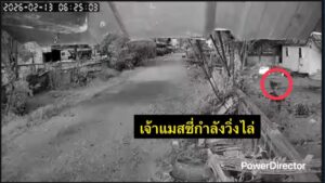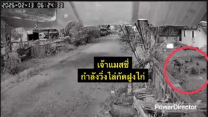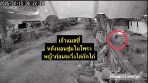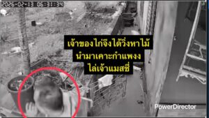 เวลา 06.31.34 น. เจ้าของไก่จึงได้วิ่งหาไม้นำมาเคาะกำแพงไล่เจ้าแมสซี่