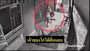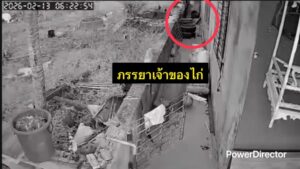 เวลา 06.22.54 น. (กล้องข้างกำแพง) ภรรยาเจ้าของไก่ได้ตื่นนอน