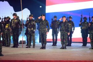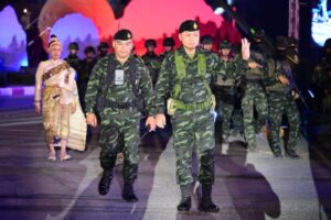 พลเอกบุญสิน พาดกลาง พร้อมด้วย ผศ.สุพางค์พรรณ พาดกลาง และผู้บังคับบัญชาระดับสูง ร่วมชมการแสดงแสงสีเสียง วีรกรรมแห่งบรรพชน งานน้อมรำลึกสมเด็จพระนเรศวรมหาราช กู้แผ่นดิน ประจำปี 2569