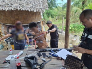 พังงา-ชุดสืบสวนสภ.ตะกั่วทุ่งพร้อมผู้ใหญ่บ้าน บุกจับหนุ่มกะไหลหนีหมายจับ พร้อมอาวุธปืน