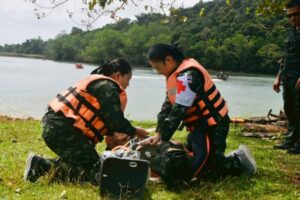 📍สำหรับการอบรมในครั้งนี้ มีผู้เข้ารับการอบรม จัดจาก กำลังพลจากมณฑลทหารบกที่ 42 และหน่วยขึ้นตรง พร้อมทั้งหน่วยเฉพาะกิจสงขลา หน่วยเฉพาะกิจตำรวจตระเวนชายแดนที่ 43 กองพลพัฒนาที่ 4 และหน่วยเฉพาะกิจสงขลา 40 โดยการอบรมในครั้งนี้ เป็นการฝึกภาคปฏิบัติเกี่ยวกับการใช้เรือชนิดต่างๆ การปฐมพยาบาลเบื้องต้น และการเคลื่อนย้ายผู้ป่วย เพื่อให้กำลังพลมีความสามารถในกรณีฉุกเฉิน ตลอดจนมีเป้าหมาย เพื่อให้ผู้เข้ารับการอบรม ให้มีความรู้ ความเข้าใจด้านการบรรเทาสาธารณภัย และการช่วยเหลือประชาชน สามารถแก้ไขปัญหาเฉพาะหน้าได้เมื่อเกิดภัย เกิดความชำนาญในการใช้เครื่องมือ อุปกรณ์บรรเทาสาธารณภัยไม่น้อยกว่าร้อยละ 90 % และนำความรู้ และทักษะที่ได้ไปช่วยเหลือผู้ประสบภัยพิบัติ ได้อย่างสอดคล้องด้วยความปลอดภัย และมีประสิทธิภาพสูงสุด