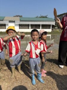 จากนั้นมีกิจกรรมเรียนรู้ผ่านประสบการณ์ด้วยการสัมผัสจริงเกี่ยวกับ “ข้าว” ประกอบด้วย 4 ฐานเรียนรู้ ได้แก่