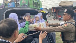 นราธิวาส – เมื่อเวลา 17.00 น. วันที่ 19 กุมภาพันธ์ 2569 (วันแรกของเดือนรอมฎอน ฮ.ศ. 1447) บริเวณหน้าสถานีตำรวจภูธรเมืองนราธิวาส ถ.สุริยะประดิษฐ์ บรรยากาศเต็มไปด้วยความอบอุ่น เมื่อ พ.ต.อ.ปรัชญา ไบเตะ ผกก.สภ.เมืองนราธิวาส พร้อมด้วยข้าราชการตำรวจและคณะกรรมการ กต.ตร. ร่วมกันจัดกิจกรรมเซอร์ไพรส์ผู้ใช้รถใช้ถนน ด้วยการมอบกล่องอินทผาลัมจำนวน 1,447 กล่อง (ตามปีฮิจเราะห์ศักราช) ให้กับประชาชนทั้งชาวไทยมุสลิมและไทยพุทธที่สัญจรไปมา