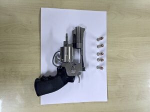 ผลการตรวจค้นพบอาวุธปืนลูกโม่ไทยประดิษฐ์ ขนาด .38 จำนวน 1 กระบอก พร้อมเครื่องกระสุนปืนขนาดเดียวกัน จำนวน 5 นัด ซุกซ่อนอยู่ในกระเป๋ากางเกงของนาย บี ซึ่งให้การยอมรับว่าอาวุธปืนดังกล่าวเป็นของตน