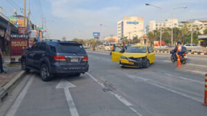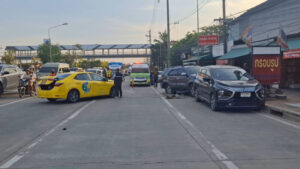 เมื่อเวลา 17.30 น.วันที่ 20 กุมภาพันธ์ 2569 เจ้าหน้าที่ตำรวจ สภ.เมืองสมุทรปราการ ได้รับแจ้งมีอุบัติเหตุรถแท็กซี่พุ่งชนท้ายรถจอดข้างทางทำมีผู้ได้รับบาดเจ็บ เหตุเกิดบนถนนศรีนครินทร์ หลักกิโลเมตรที่ 17 ขาเข้า มุ่งหน้าแยกศรีเทพา ก่อนถึงโลตัส ตำบลบางเมือง อำเภอเมือง จังหวัดสมุทรปราการ หลังรับแจ้งจึงพร้อมด้วย เจ้าหน้าที่มูลนิธิร่วมกตัญญู เดินทางตรวจสอบที่เกิดเหตุ