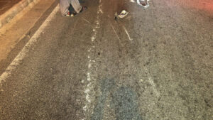 ที่เกิดเหตุบริเวณช่องทางซ้าย พบชาย 1 ราย นอนหมดสติอยู่บนพื้นถนน มีบาดแผลตามร่างกายหลายแห่ง อาการสาหัส เจ้าหน้าที่กู้ชีพเร่งปฐมพยาบาลเบื้องต้นก่อนนำส่งโรงพยาบาลสมุทรปราการ ทราบชื่อต่อมาคือ นายอรรถพล สิงห์ทรายขาว อายุ 21 ปี ห่างจากจุดพบผู้บาดเจ็บประมาณ 30 เมตร พบรถจักรยานยนต์ ยี่ห้อ ฮอนด้า ลีด สีขาว ทะเบียน 6 ขฎ 2927 กรุงเทพมหานคร ล้มคว่ำอยู่ในสภาพด้านหน้าพังเสียหายอย่างหนัก มีร่องรอยการเฉี่ยวชนชัดเจน ส่วนบริเวณช่องทางขวาพบรถยนต์นั่งส่วนบุคคล ยี่ห้อ โตโยต้า ยาริส สีเทา ทะเบียน 8 กณ 8547 กรุงเทพมหานคร สภาพกันชนหน้าพังเสียหาย และกระจกหน้ารถแตก