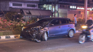 หนุ่มวัย 21 ปี ขี่มอไซค์กลับรถตัดหน้ารถเก๋งกะทันหัน ถูกพุ่งชน เจ็บสาหัส