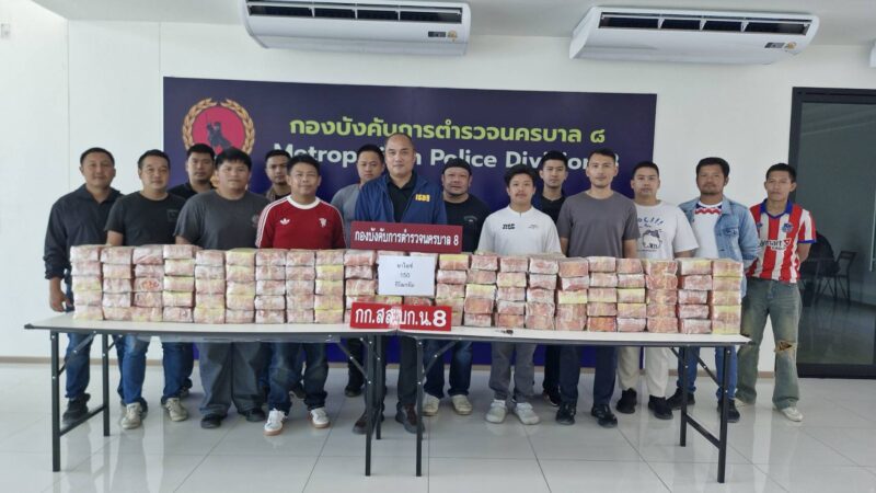 กองกำกับการสืบสวน กองบังคับการตำรวจนครบาล 8 ภายใต้ กองบัญชาการตำรวจนครบาล แถลงผลการจับกุมเครือข่ายลำเลียงยาเสพติดรายใหญ่ เส้นทาง “นครหลวง–เชียงราย” พร้อมของกลางยาไอซ์ 150 กิโลกรัม ซุกซ่อนในช่องลับใต้หลังคารถตู้ ดัดแปลงพิเศษเพื่ออำพรางการตรวจค้น