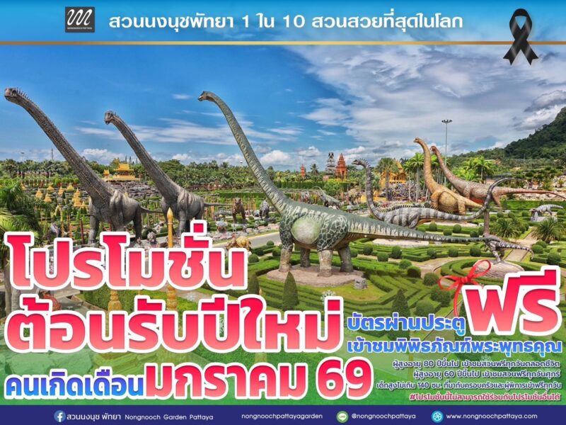 นายกัมพล ตันสัจจา ประธานสวนนงนุชพัทยา กล่าวว่า เพื่อมอบของขวัญปีใหม่ 2569 ให้แก่นักท่องเที่ยว สวนนงนุชพัทยาได้จัดสิทธิพิเศษสำหรับผู้ที่เกิดในเดือนมกราคม เพียงแสดงบัตรประชาชนหรือเอกสารยืนยันตัวตน ก็สามารถเข้าชมสวนนงนุชพัทยาได้ฟรี พร้อมรับสิทธิชมพิพิธภัณฑ์พระพุทธคุณฟรี ตั้งแต่วันที่ 1–31 มกราคมนี้เท่านั้น