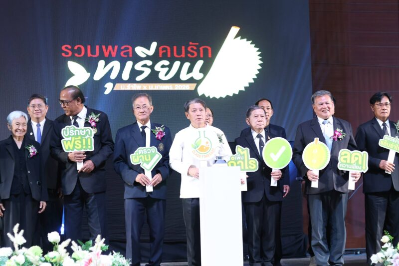 วันนี้ (20 ก.พ. 69) ที่ หอประชุมสิริรำไพพรรณ อาคาร 36 ชั้น 2 มหาวิทยาลัยราชภัฏรำไพพรรณี นายมนต์สิทธิ์ ไพศาลธนวัฒน์ ผู้ว่าราชการจังหวัดจันทบุรี เป็นประธานพิธีเปิด “โครงการ ม.รำไพ – ม.เกษตร ฯ 2026 : รวมพลคนรักทุเรียน” โดยจัดขึ้นเพื่อประกาศความพร้อมในการนำเทคโนโลยีเกษตรแม่นยำมาประยุกต์ใช้ ผ่านการขับเคลื่อนของ “ศูนย์วิจัยและพัฒนานวัตกรรมสินค้าเกษตรและอาหารภาคตะวันออก (Class Forecast)” ซึ่งมุ่งเน้นไปที่การตรวจสอบและควบคุมคุณภาพของผลผลิตทุเรียนแบบครบวงจร ด้วยระบบเซ็นเซอร์อัจฉริยะและเครื่องมือตรวจวิเคราะห์ขั้นสูง โดยมีตัวแทนจากหน่วยงานภาครัฐ ภาคเอกชน และเครือข่ายเกษตรกรเข้าร่วมงาน