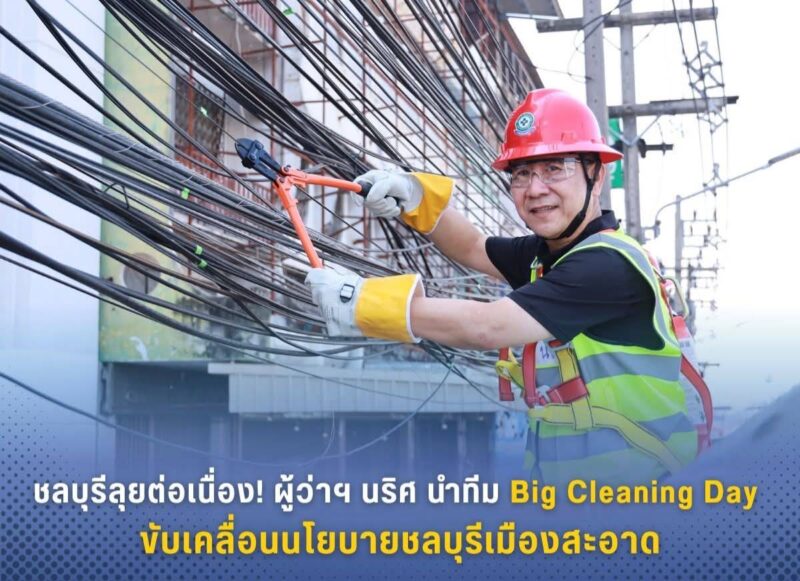 นายนริศ นิรามัยวงศ์ ผู้ว่าราชการจังหวัดชลบุรี นำคณะผู้บริหารและหัวหน้าส่วนราชการลงพื้นที่เขตเทศบาลเมืองชลบุรี เพื่อขับเคลื่อนกิจกรรม Big Cleaning Day ครั้งที่ 4 ประจำปี 2569 ตามนโยบายชลบุรีเมืองสะอาด โดยมีนายพงศ์ธสิษฐ์ ปิจนันท์ รองผู้ว่าราชการจังหวัดชลบุรี, นางสาวขวัญเรือน ศรีจันทร์ ปลัดจังหวัดชลบุรี, พันเอกประเสริฐ ใจกล้า รอง ผบ.มทบ.14, นายเจษ เสียงลือชา ท้องถิ่นจังหวัดชลบุรี, นายวรจักร สถาพรภิญโญ นายอำเภอเมืองชลบุรี นายองอาจ ประเสริฐจิตต์ นายกเทศมนตรีเมืองชลบุรี และนายฉัตรชัย อั้งลิ้ม นายกเทศมนตรีนครบ้านสวน พร้อมด้วยพนักงานเจ้าหน้าที่จากส่วนราชการ และองค์กรปกครองส่วนท้องถิ่นเข้าร่วมกิจกรรมกันอย่างพร้อมเพรียง