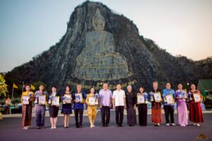 โดยมี นายชัยพร แพภิรมย์รัตน์ รองผู้ว่าราชการจังหวัดชลบุรี เป็นประธานในพิธีมอบรางวัลขบวนแห่โคม พร้อมด้วย นางอำไพ ศักดานุกูลจิต สไลวินสกี้ ท่องเที่ยวและกีฬาจังหวัดชลบุรี, พล.ร.ท.พงศ์ศักดิ์ ภูริโรจน์ ประธานมูลนิธิพระพุทธรูปแกะสลักหน้าผาเขาชีจรรย์, หัวหน้าส่วนราชการ และแขกผู้มีเกียรติ เข้าร่วมงานอย่างพร้อมเพรียง