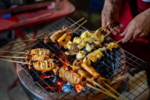 ภายในงานอัดแน่นด้วยบูธร้านค้าซีฟู้ดกว่า 100 ร้านค้า รวมเมนูปลาหมึกสด อาหารทะเลพื้นถิ่น และเมนูขึ้นชื่อจากผู้ประกอบการในพื้นที่ให้เลือกชิมอย่างจุใจ ท่ามกลางการตกแต่งธีมหมู่บ้านประมงแฟนตาซีที่ผสานกลิ่นอายวิถีชุมชนกับศิลปะร่วมสมัยได้อย่างลงตัว