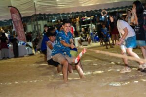 บรรยากาศริมทะเลยังเต็มไปด้วยความสนุกจากกิจกรรมการแข่งขันตกหมึกสุดมันส์ ซึ่งมีผู้สมัครเข้าร่วมกว่า 400 คน สะท้อนความนิยมและกระแสตอบรับอย่างล้นหลาม พร้อมกิจกรรมกีฬาชุมชนอย่างงัดข้อและชักเย่อ รวมถึงการแสดงดนตรีโฟล์กซองจากนักเรียนในสังกัดเมืองพัทยา เติมเต็มสีสันให้หาดจอมเทียนมีชีวิตชีวาตลอดสองวันของการจัดงาน