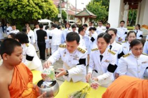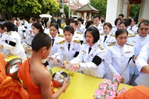ภายในพิธีผู้ว่าราชการจังหวัดพิษณุโลก เป็นประธานในพิธีจุดธูปเทียนบูชาพระรัตนตรัย พระสงฆ์เจริญพระพุทธมนต์ และสวดทักษิณานุปทานเพื่อถวายเป็นพระราชกุศล พร้อมกล่าวน้อมรำลึกในพระมหากรุณาธิคุณที่ทรงมีต่อปวงชนชาวไทย ทั้งในด้านวรรณศิลป์ การปกครอง และการทำนุบำรุงพระพุทธศาสนา ภายหลังเสร็จสิ้นพิธีสงฆ์ ผู้ว่าราชการจังหวัดและนายกเหล่ากาชาด นำผู้เข้าร่วมพิธีร่วมทำบุญตักบาตรถวายพระราชกุศลแด่พระสงฆ์และสามเณรจำนวน 56 รูป อย่างพร้อมเพรียงกัน ทั้งนี้เพื่อเป็นการแสดงออกถึงความกตัญญูกตเวที และน้อมรำลึกถึงพระมหากรุณาธิคุณอันหาที่สุดมิได้ของพระบาทสมเด็จพระพุทธเลิศหล้านภาลัย ที่ทรงประกอบพระราชกรณียกิจนานัปการ อันเป็นคุณูปการต่อประเทศชาติและประชาชนสืบมาจนถึงปัจจุบัน.