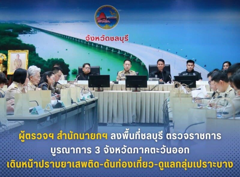 ผู้ตรวจฯสำนักนายกฯลงพื้นที่ชลบุรี ตรวจราชการบูรณาการ 3 จังหวัดภาคตะวันออก เดินหน้าปราบยาเสพติด-ดันท่องเที่ยว-ดูแลกลุ่มเปราะบาง